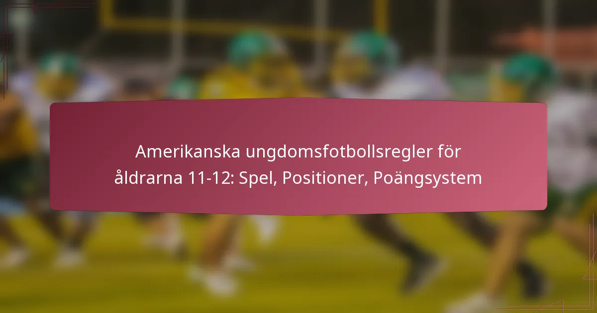 De grundläggande spelreglerna för amerikansk ungdomsfotboll för åldrarna 11-12 fokuserar på att skapa en säker och njutbar miljö samtidigt som de främjar färdighetsutveckling. Dessa regler omfattar spelstruktur, spelarsäkerhet, kontaktregler, spelflöde och utrustningsspecifikationer för att säkerställa en rättvis och konkurrenskraftig upplevelse.